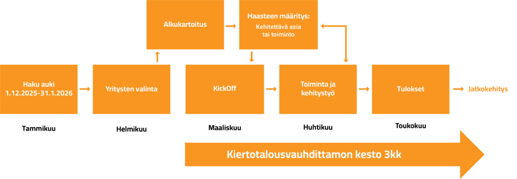 - Yrityskohtainen valmennus: Yrityksille tarjotaan valmennusohjelmia, joissa testataan kiertotalouden liiketoimintamallien soveltamista heidän tarpeisiinsa.